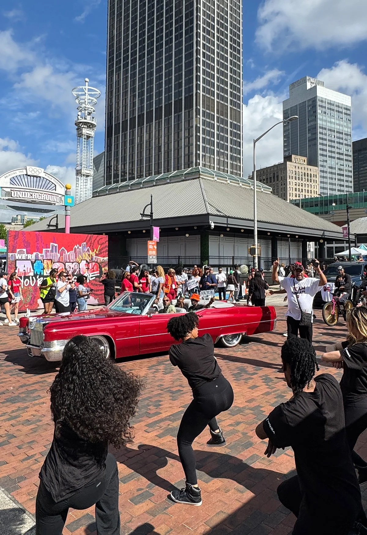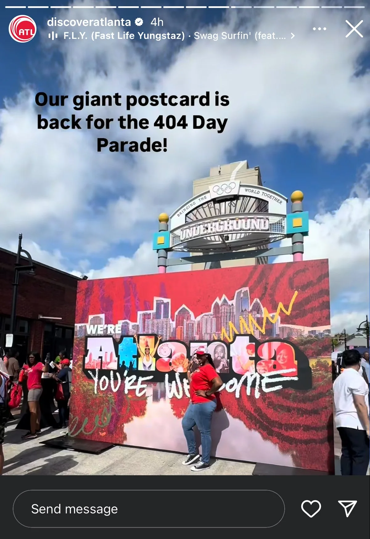 Our postcard activation served as the grand finale of the first annual 404 Day parade, creating an epic photo moment for local leaders including U.S. Representative Nikema Williams, Mayor Andre Dickens, and members of the legendary Dungeon Family.