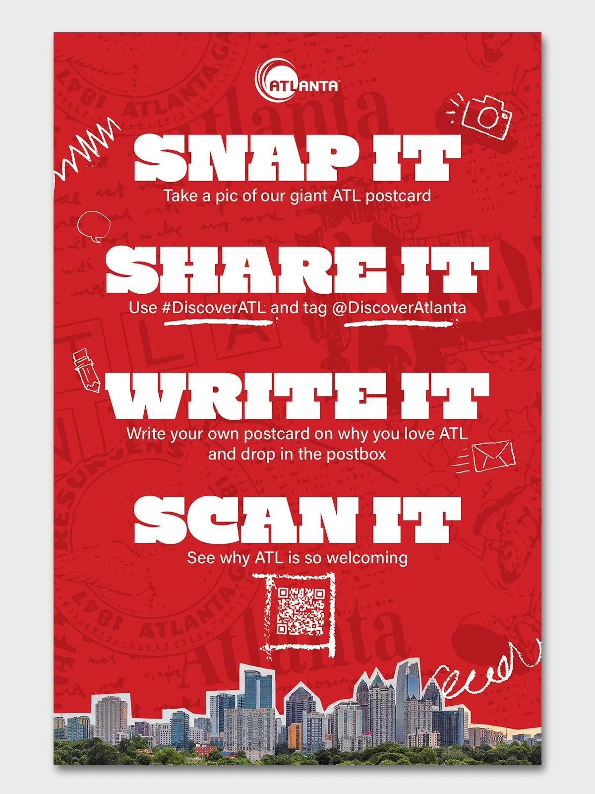 To bring Atlanta’s “Welcoming” spirit to life, our team created a massive 10x15’ postcard pop-up inviting locals, visitors, and even the mayor to send handwritten love from ATL.
